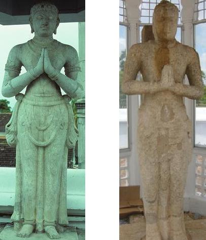 When similar statues are found in Sri Lanka, Sri Lankan Archaeologists replace the broken hands with cement hands in a praying pose (as illustrated below) and the statues are irresponsibly named after some king.