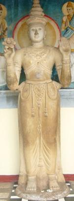 Left: Another relocated statue. This has been brought to the Kiri Vehera in Kataragama. The broken arms have as usual been remolded in a uncharacteristic pose.